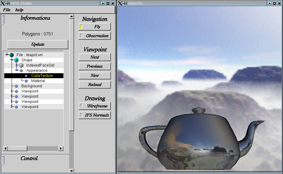 du format de description de scène 3D VRML 97. Elle propose entre autre :